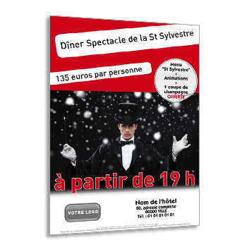Imprimé sur un papier écologique avec des encres végétales, ce flyer A5 recto vous permet, soit d'utiliser vos propres visuels, soit d'en choisir gratuitement dans notre banque d'images CHR, puis de compléter l'accroche puis le texte de la pastille, avant de finir en précisant vos coordonnées.